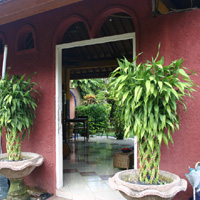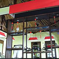 建物内は結構広く風が抜けるので涼しい。中国系の置物が目立つ。 個室には外側の壁がなく、外からよく見えます。風通しは非常によい。 給湯器付きシャワーも完備されているので心置きなく洗い流せます。